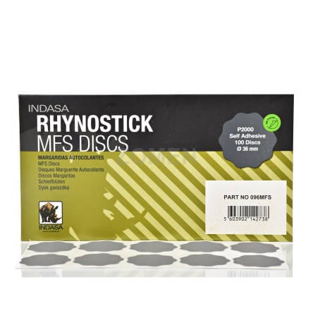 INDASA RHYNOSTICK MFS Daisy Disc P2000 to samoprzylepny dysk ścierny (36 mm), kształt kwiatu (daisy), z węglikiem krzemu, pozwalający na precyzyjne, punktowe szlifowanie na mokro lub sucho. Idealnie przygotowuje powierzchnię lakierniczą do polerowania – usuwa niedoskonałości i zapewnia równomierną strukturę.