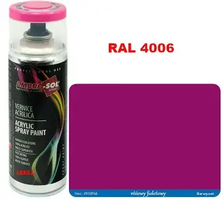 Lakier akrylowy w sprayu Ambro-Sol RAL 4006 Purpurowy Połysk, 400 ml – szybkoschnąca emalia o intensywnym kolorze, odporna na warunki atmosferyczne i UV. Do metalu, drewna, plastiku, szkła i wielu innych powierzchni. Idealny do motoryzacji i dekoracji.