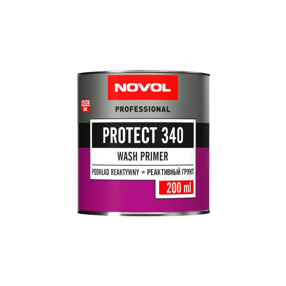NOVOL PROTECT 340 Podkład Reaktywny 200 ml + Utwardzacz – błyskawiczny wash primer antykorozyjny o znakomitej przyczepności, szybkim czasie schnięcia (10 min), aplikacji mokro-na-mokro i wysokiej wydajności. Idealny do napraw fragmentów karoserii. Niezastąpiony jako izolacja przed podkładem akrylowym.