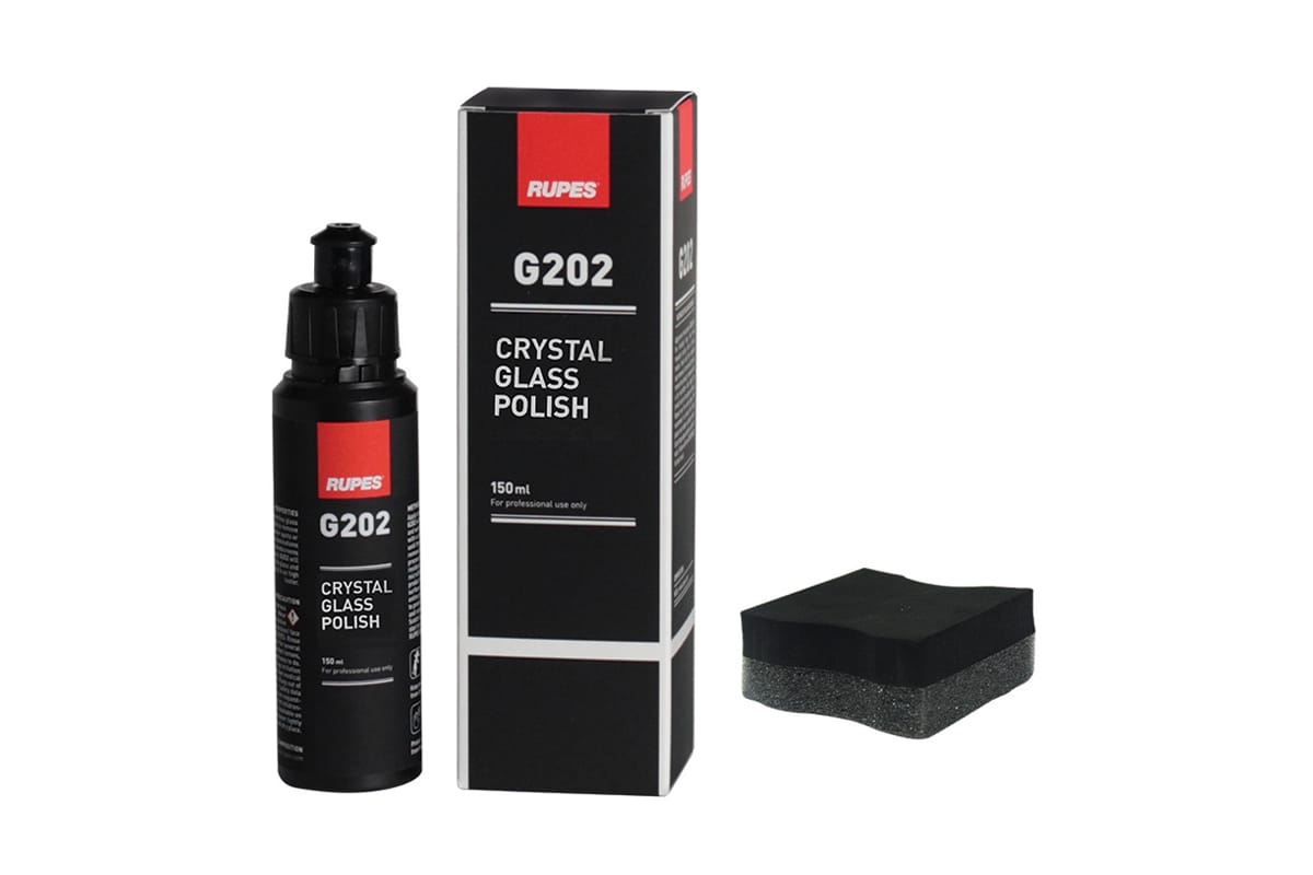 RUPES G202 Crystal Glass Polish (150 ml) – ultra drobna pasta do polerowania szyb, głęboko usuwa plamy z twardej wody, film drogowy i tłuste osady bez ryzyka zarysowań. Przeznaczona do szyb samochodowych – ręczna aplikacja, natychmiastowy efekt, idealna klarowność i lepsza widoczność.