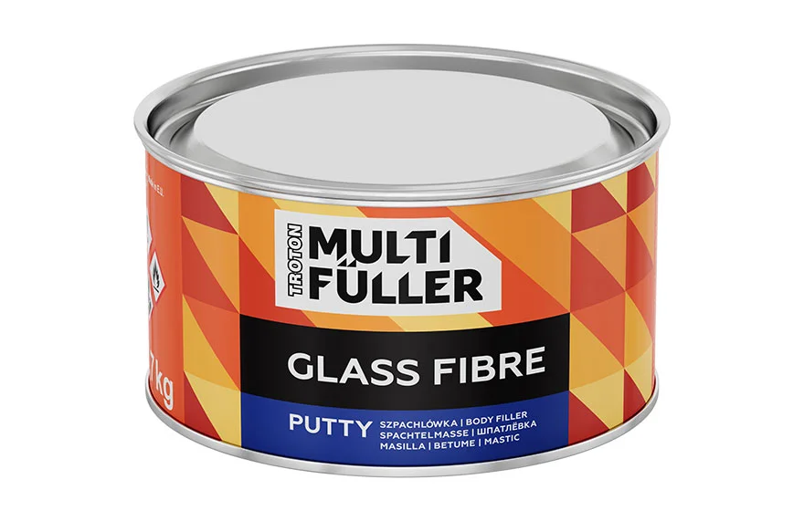TROTON Multi Fuller Glass Fibre to profesjonalna 2‑komponentowa szpachlówka poliestrowa zbrojona włóknem szklanym, stworzona z myślą o precyzyjnych i trwałych naprawach karoserii. Dzięki wyjątkowej wytrzymałości oraz elastyczności jest idealna do wypełniania głębokich wgnieceń, otworów i miejsc osłabionych przez korozję — sprawdzi się zarówno w pojazdach osobowych, jak i przyczepach czy naczepach